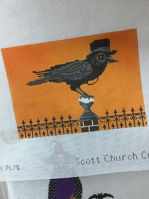 Now that we are being hopeful, allow me to share a great challenge in my current life. Halloween needlepoint. I wasn't raised a Halloween person. As a kid I had the obligatory costume, we did the jack-o-lantern carving thing, and that was it. No hay bales, no inflatable witches in the yard, no strings of mummy-shaped lights. Just the costume and the pumpkin. Our family decorating centered on 3 holidays -- Christmas, Thanksgiving, and Easter. So here I am in my alleged adulthood finally coming under the spell of Halloween decor. It's all really my LNS owner's fault since she's alllllll about Halloween so we have a lot of opportunities to oggle such canvases in the shop. So, for weeks I have been eyeing these particular beauties: